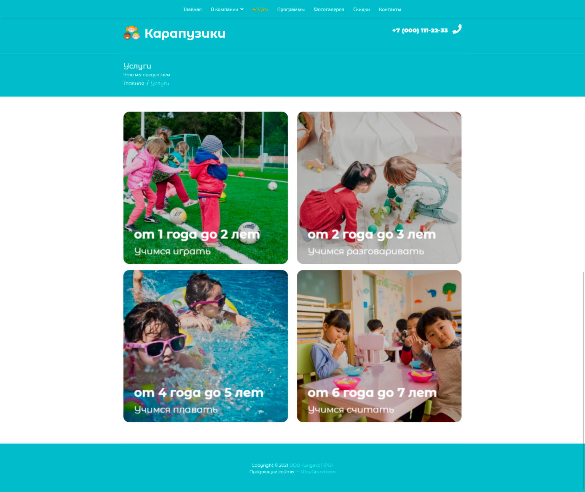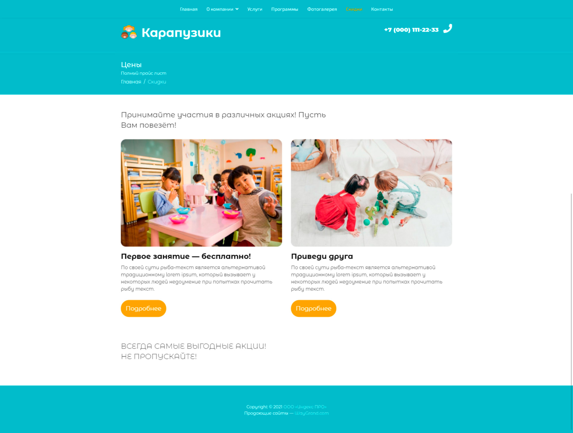 Закажите готовый продающий сайт визитка #0419301 в Одинцове за 5-7 дня «под ключ»: свёрстан, отрисован и готов к рекламе. Тематика шаблона «Частный детский центр».