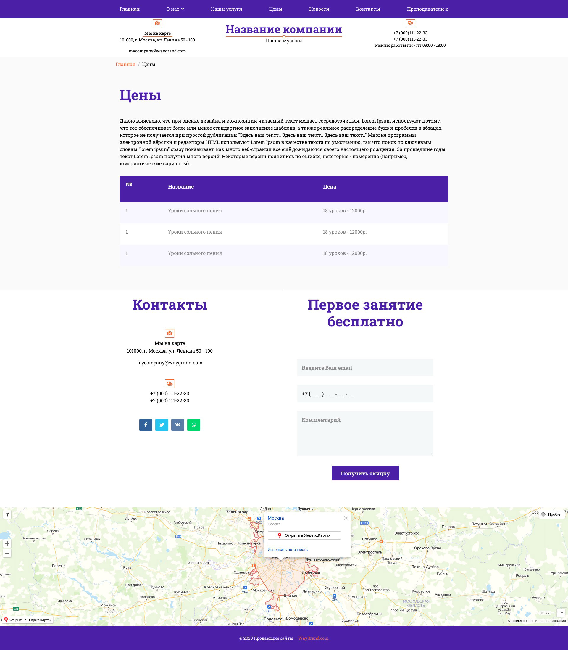 Закажите готовый продающий сайт визитка #1431301 в Одинцове за 5-7 дня «под ключ»: свёрстан, отрисован и готов к рекламе. Тематика шаблона «Школа музыки».