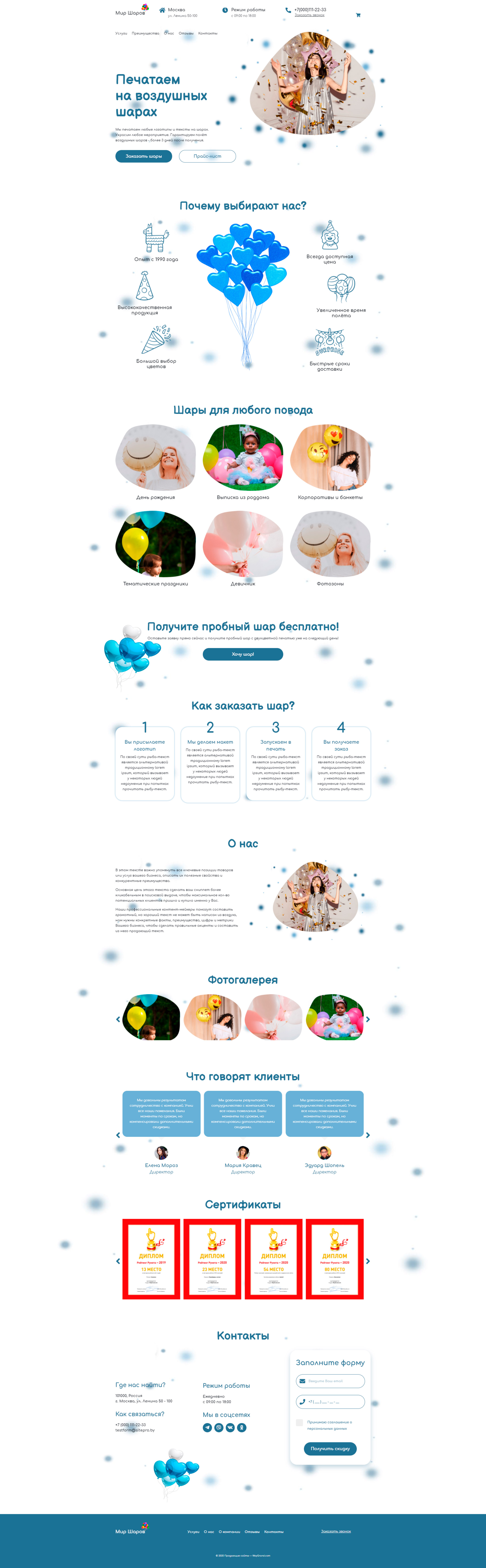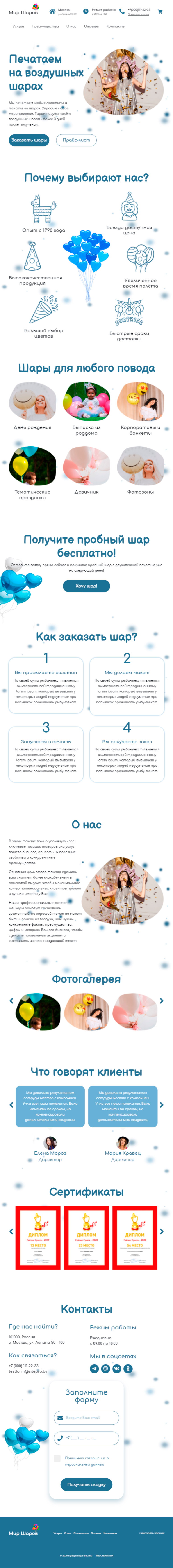Закажите готовый продающий сайт лендинг #1826202 в Одинцове за 1-3 дня «под ключ»: свёрстан, отрисован и готов к рекламе. Тематика шаблона «Печать на воздушных шарах».