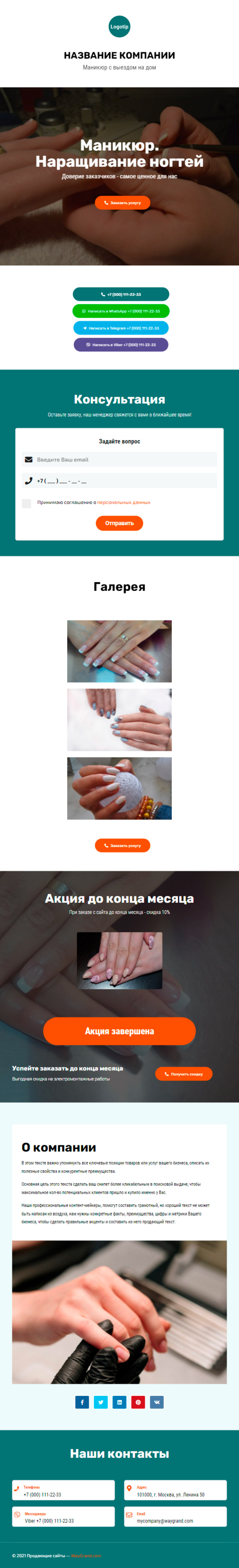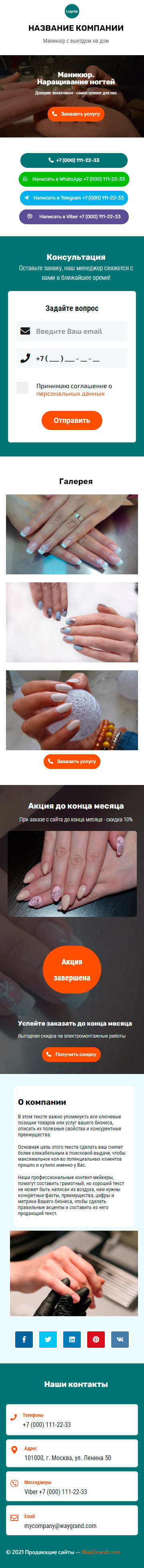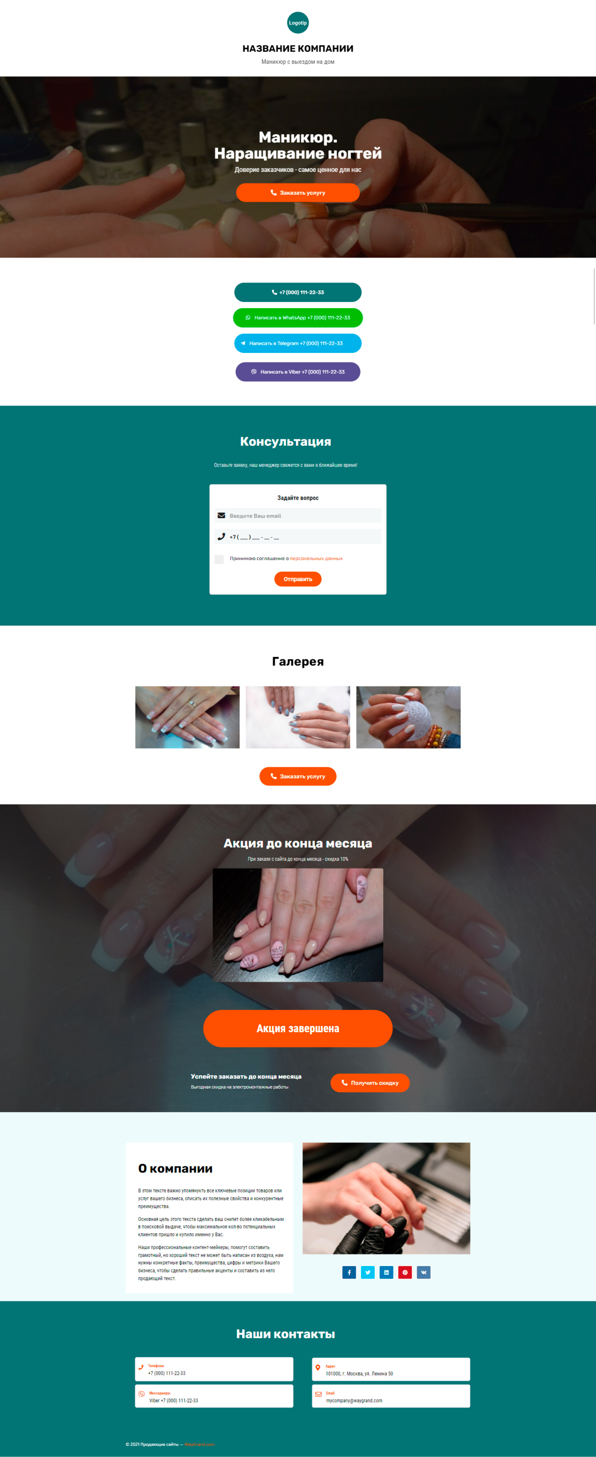 Закажите готовый продающий сайт визитка #1107101 в Одинцове за 5-7 дня «под ключ»: свёрстан, отрисован и готов к рекламе. Тематика шаблона «Маникюр. Наращивание ногтей».