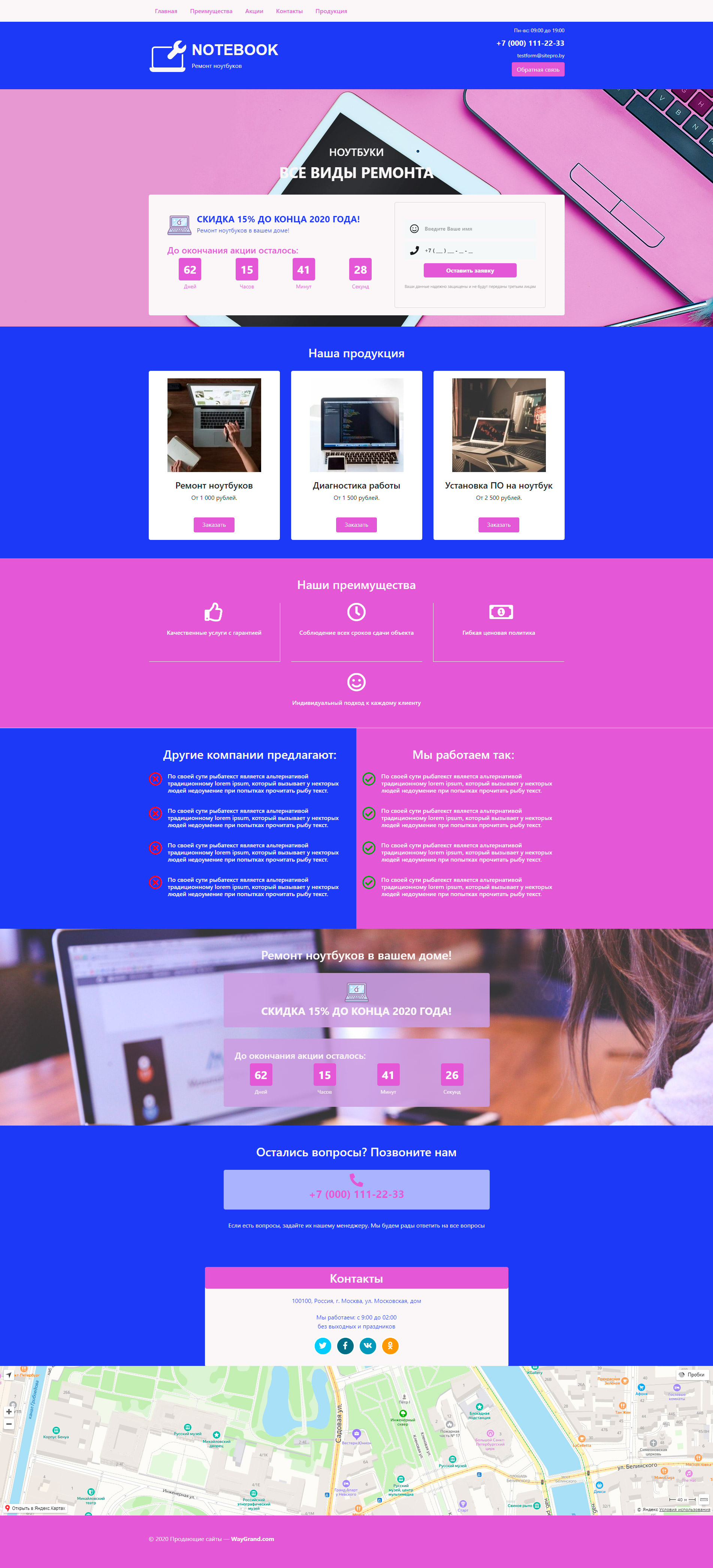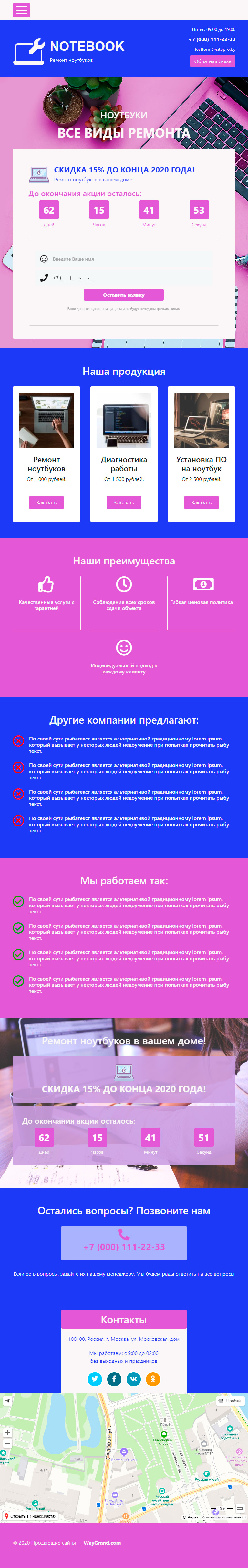Закажите готовый продающий сайт лендинг #0719201 в Одинцове за 1-3 дня «под ключ»: свёрстан, отрисован и готов к рекламе. Тематика шаблона «Ремонт ноутбуков».