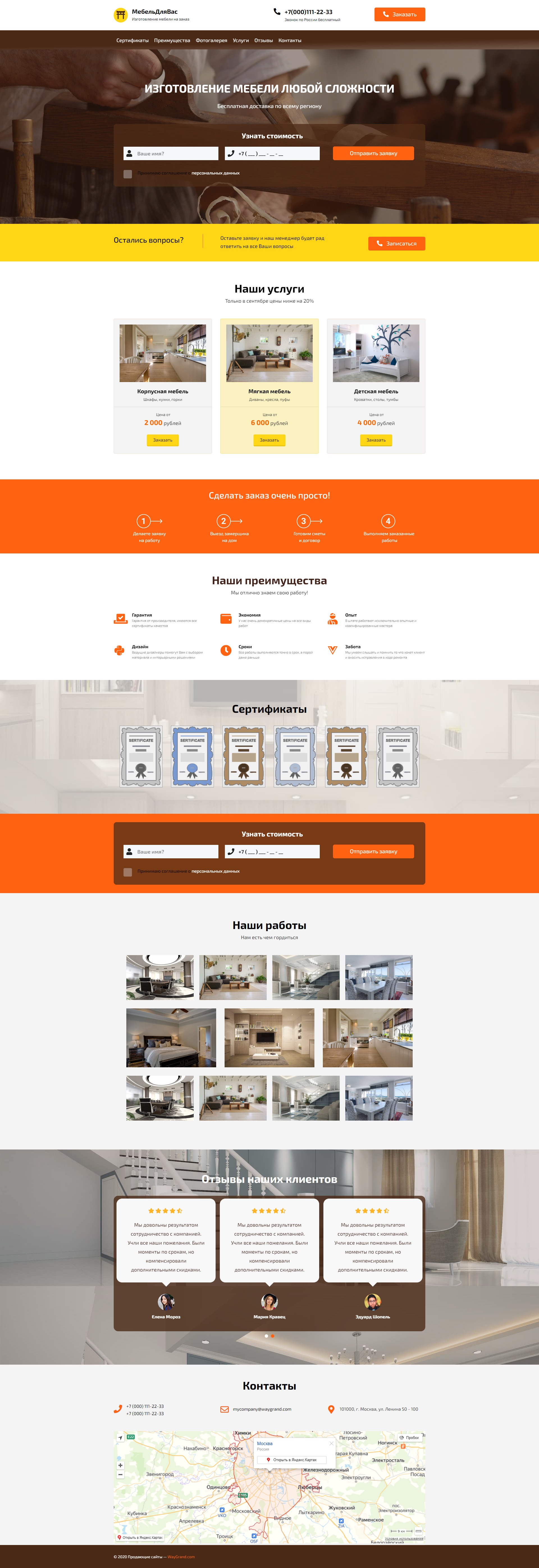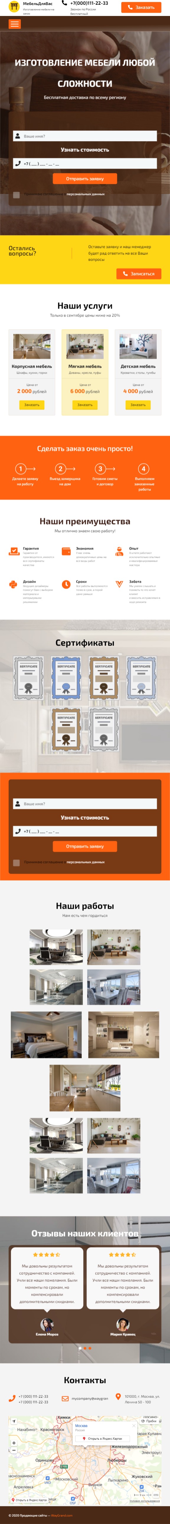 Закажите готовый продающий сайт лендинг #0903201 в Одинцове за 1-3 дня «под ключ»: свёрстан, отрисован и готов к рекламе. Тематика шаблона «Изготовление мебели».