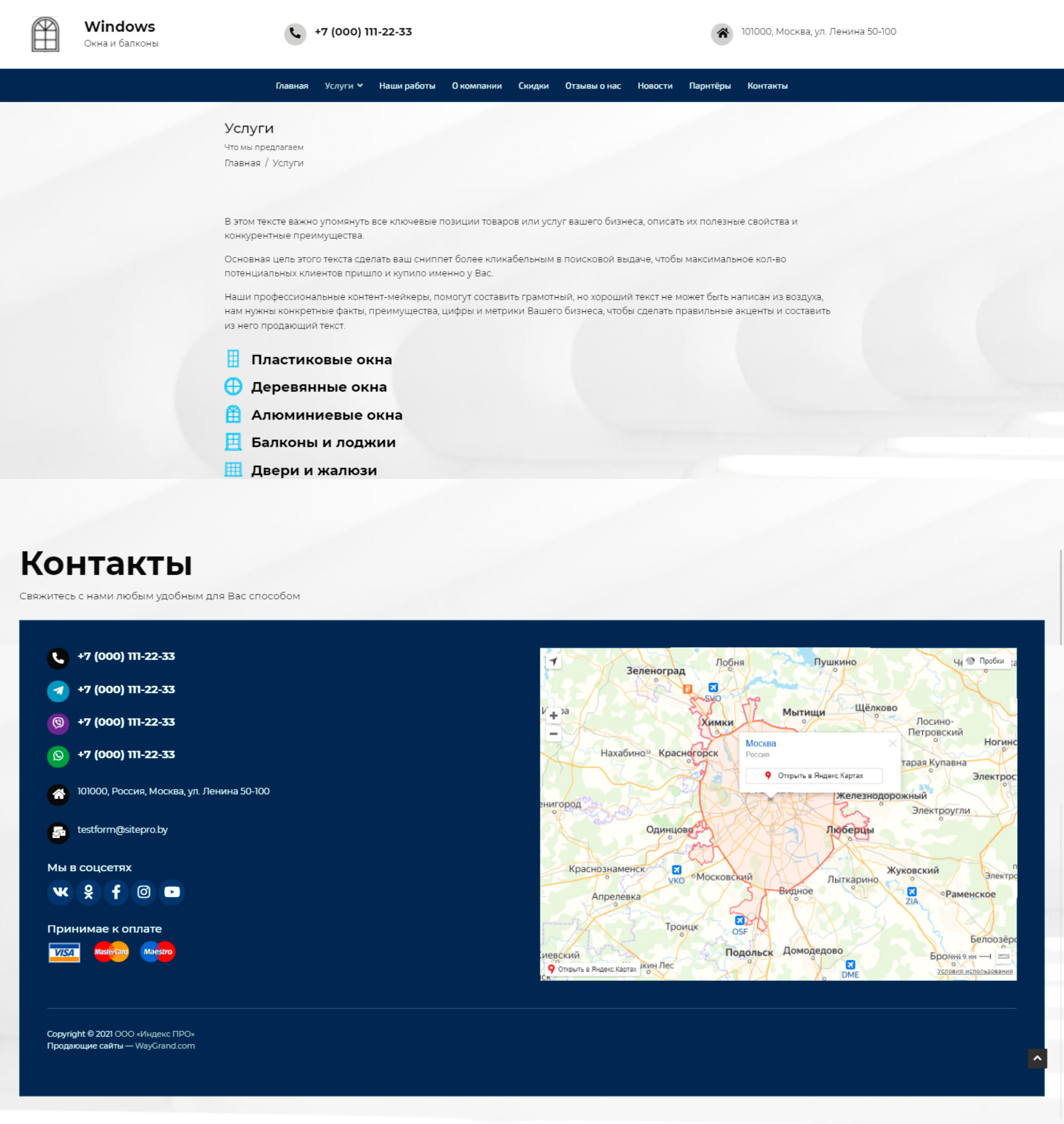 Закажите готовый продающий сайт визитка #2034302 в Одинцове за 5-7 дня «под ключ»: свёрстан, отрисован и готов к рекламе. Тематика шаблона «Окна и балконы».