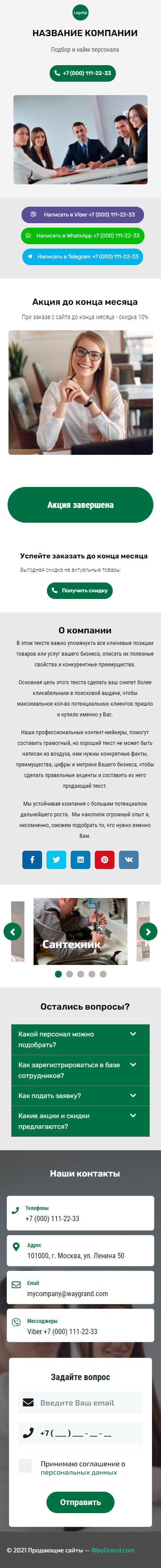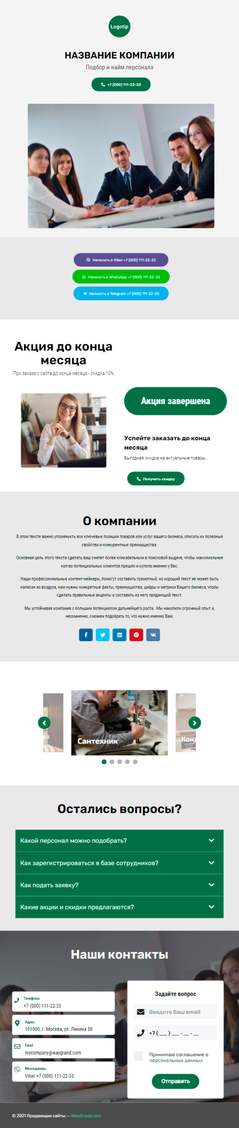 Закажите готовый продающий сайт визитка #1415101 в Одинцове за 5-7 дня «под ключ»: свёрстан, отрисован и готов к рекламе. Тематика шаблона «Подбор и найм персонала».