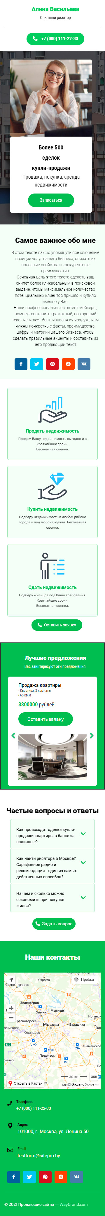 Закажите готовый продающий сайт визитка #2102101 в Одинцове за 5-7 дня «под ключ»: свёрстан, отрисован и готов к рекламе. Тематика шаблона «Опытный риэлтор».