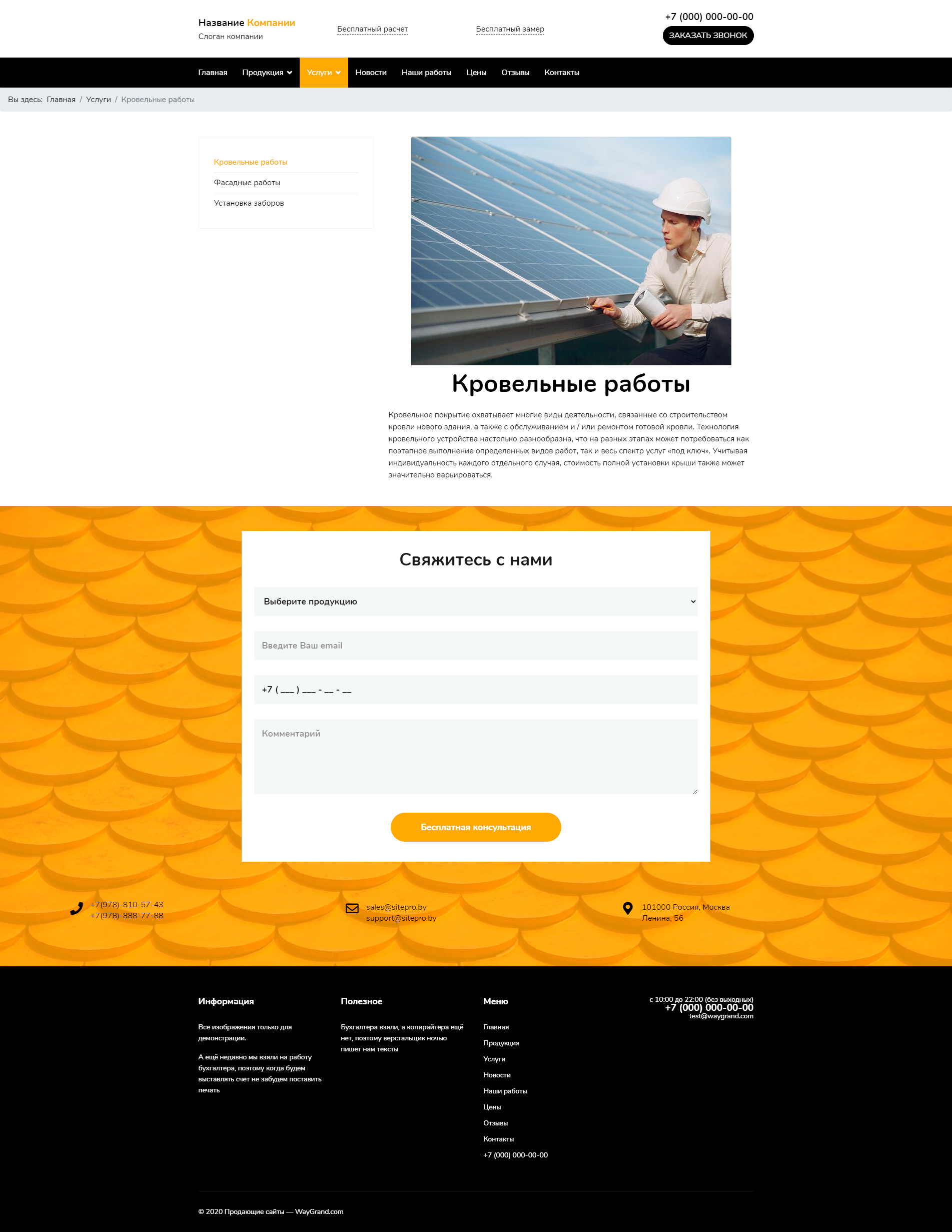Закажите готовый продающий сайт визитка #2132301 в Одинцове за 5-7 дня «под ключ»: свёрстан, отрисован и готов к рекламе. Тематика шаблона «Заборы, кровля, фасады».