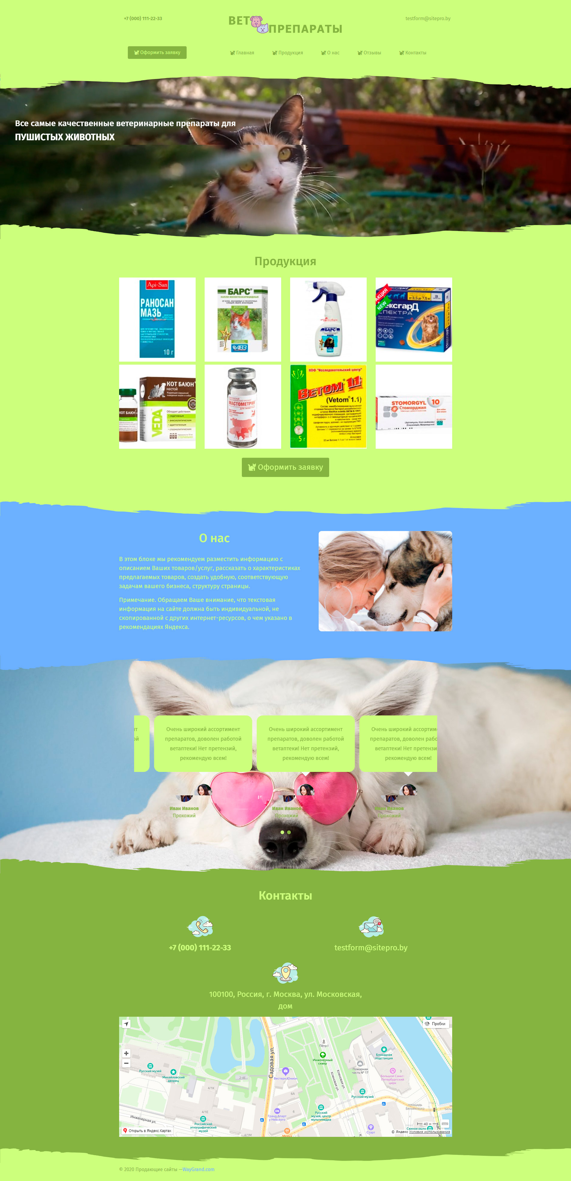 Закажите готовый продающий сайт лендинг #2305202 в Одинцове за 1-3 дня «под ключ»: свёрстан, отрисован и готов к рекламе. Тематика шаблона «Ветпрепараты».