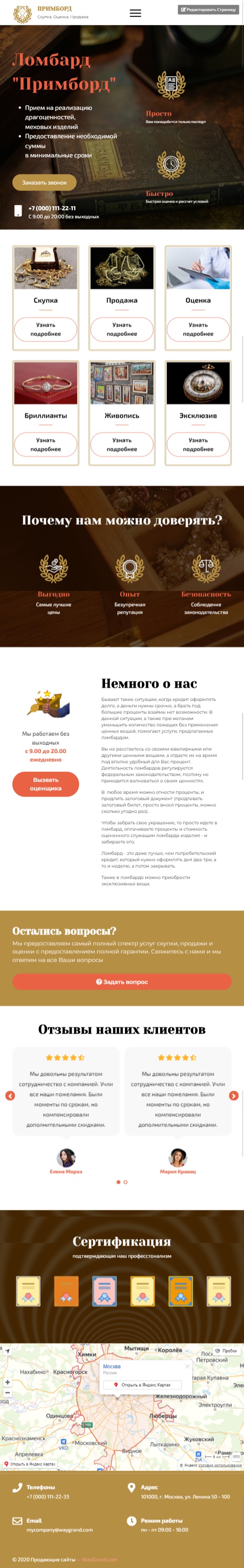 Закажите готовый продающий сайт лендинг #2408201 в Одинцове за 1-3 дня «под ключ»: свёрстан, отрисован и готов к рекламе. Тематика шаблона «Ломбард».