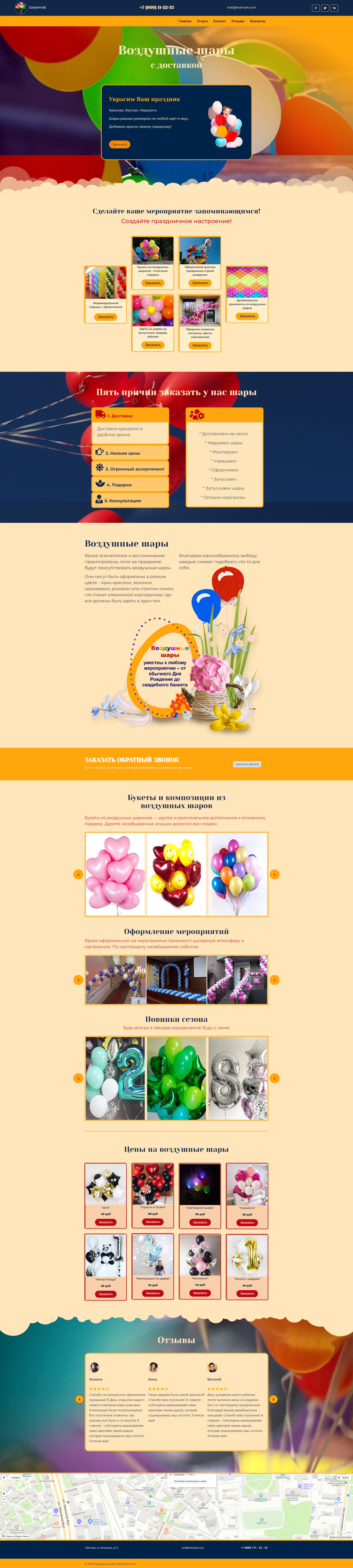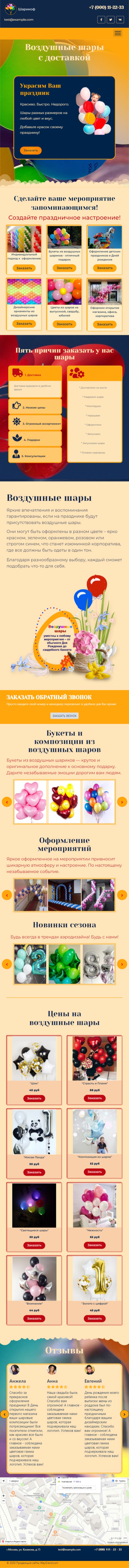 Закажите готовый продающий сайт лендинг #2427202 в Одинцове за 1-3 дня «под ключ»: свёрстан, отрисован и готов к рекламе. Тематика шаблона «Воздушные шары».