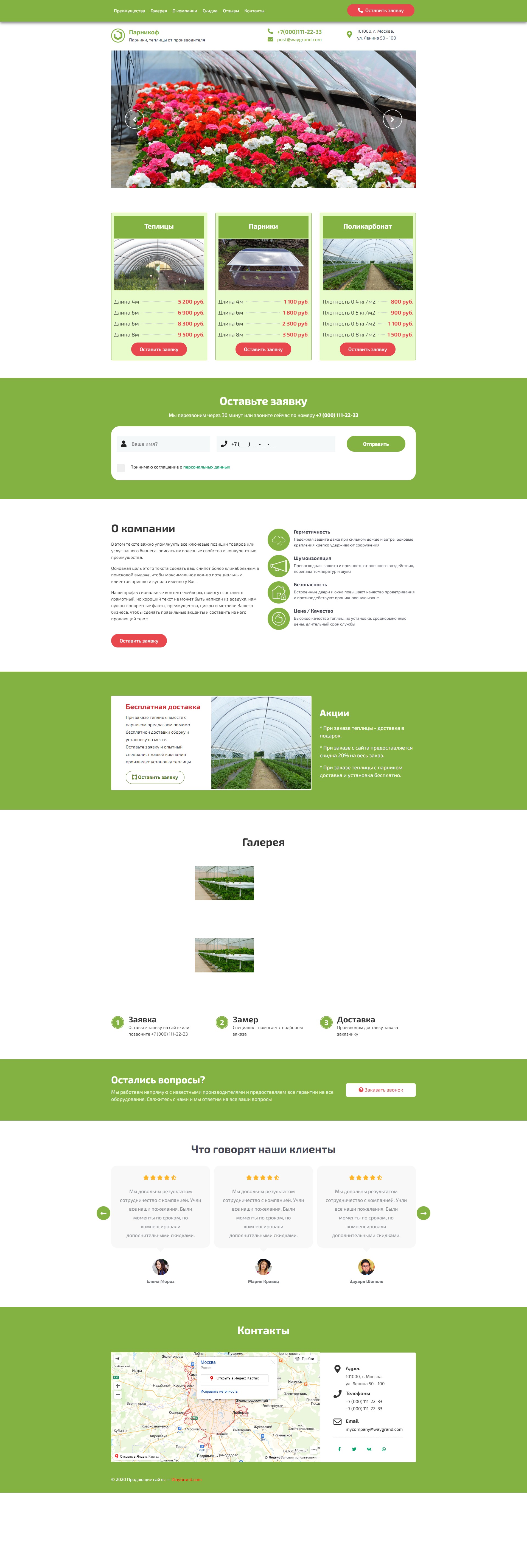 Закажите готовый продающий сайт лендинг #2624202 в Одинцове за 1-3 дня «под ключ»: свёрстан, отрисован и готов к рекламе. Тематика шаблона «Парники и теплицы».