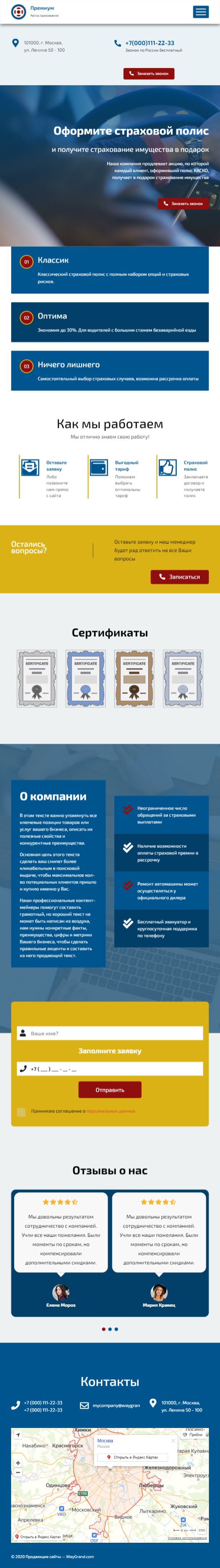 Закажите готовый продающий сайт лендинг #2856201 в Одинцове за 1-3 дня «под ключ»: свёрстан, отрисован и готов к рекламе. Тематика шаблона «Автострахование».
