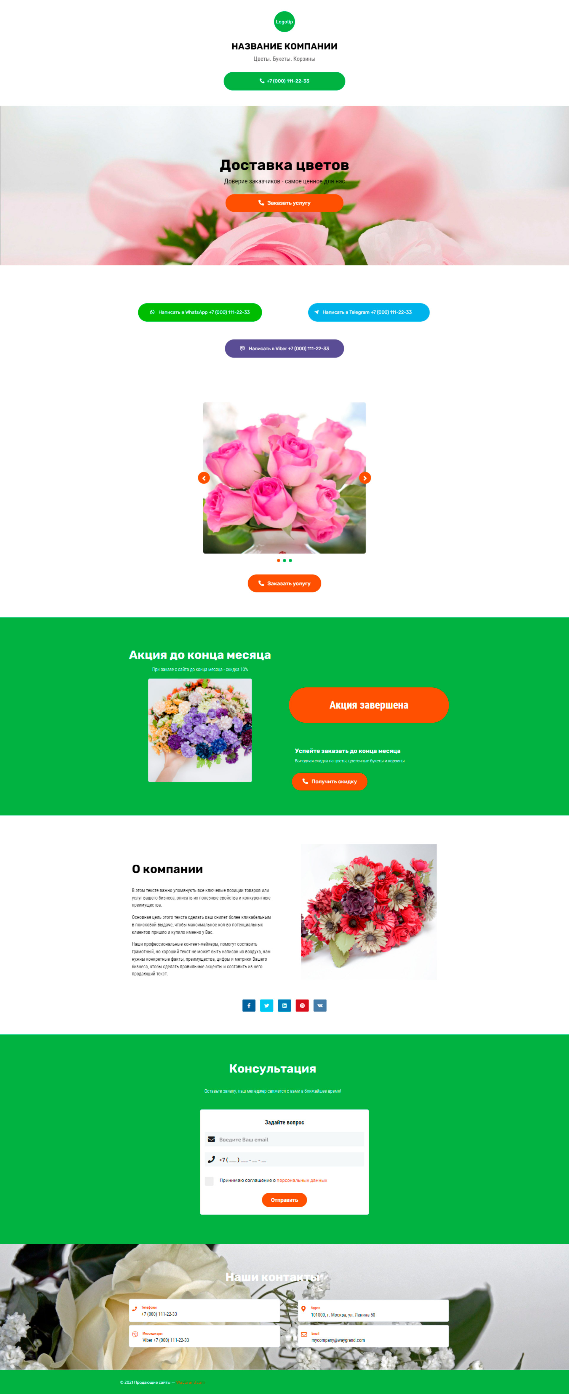 Закажите готовый продающий сайт визитка #2404101 в Одинцове за 5-7 дня «под ключ»: свёрстан, отрисован и готов к рекламе. Тематика шаблона «Доставка цветов».