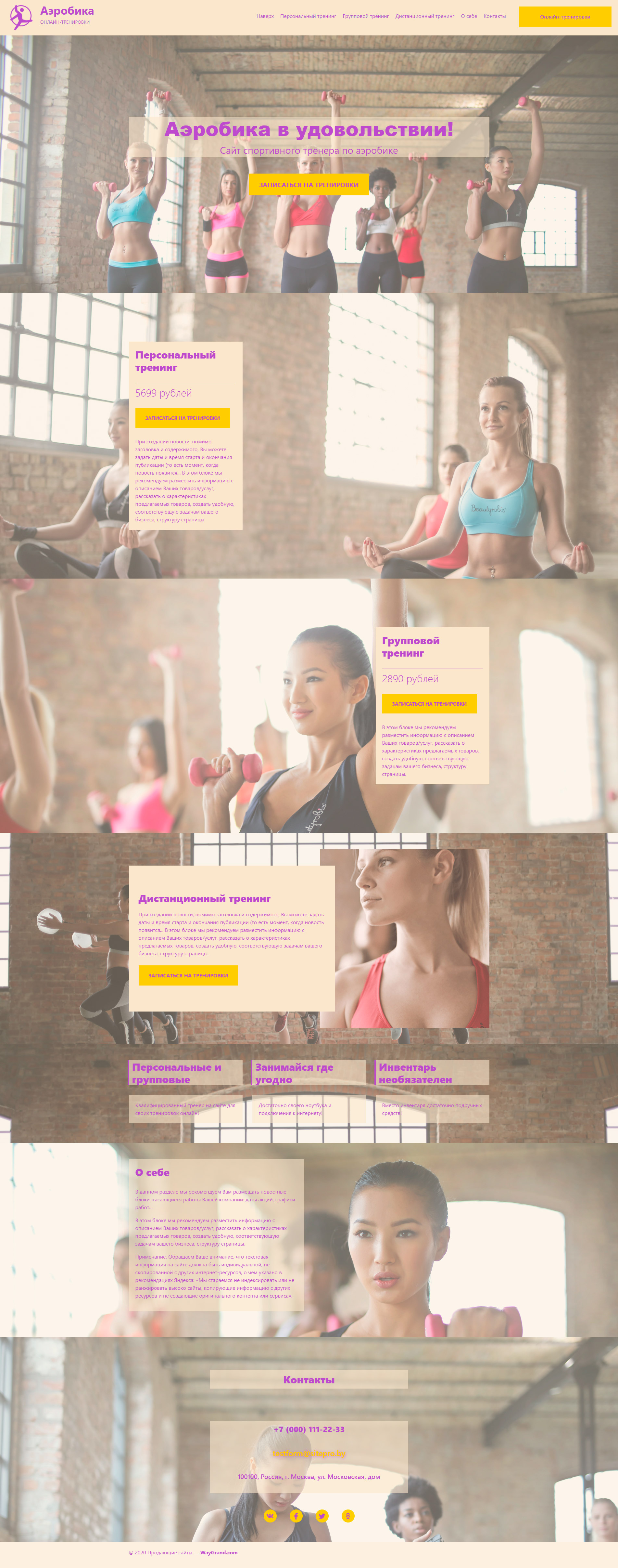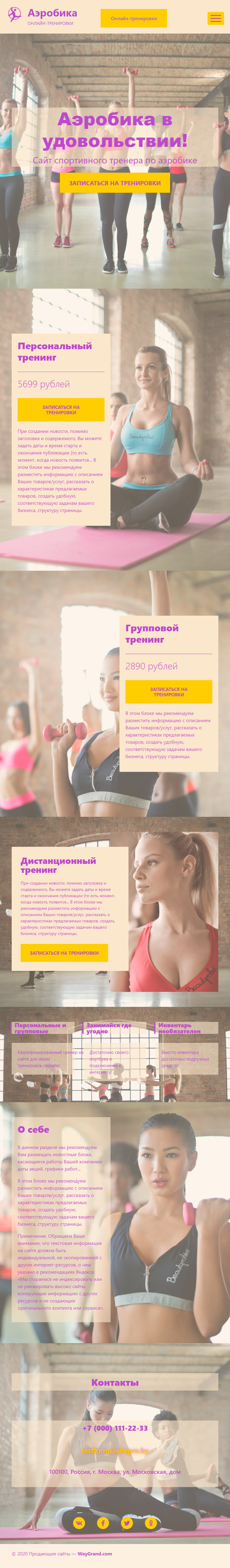 Закажите готовый продающий сайт лендинг #1955207 в Одинцове за 1-3 дня «под ключ»: свёрстан, отрисован и готов к рекламе. Тематика шаблона «Аэробика онлайн тренировки».