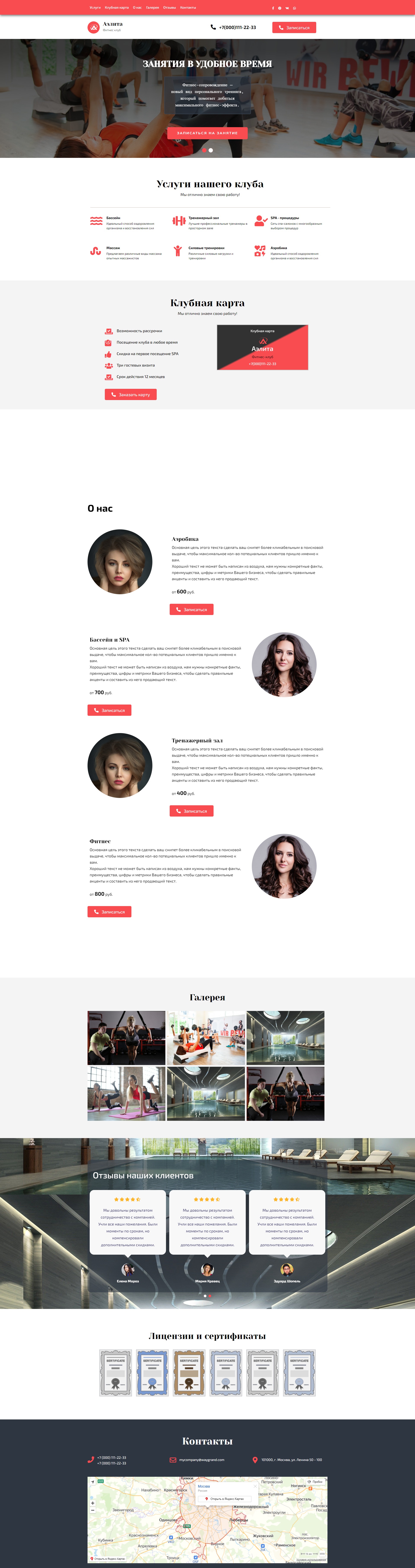 Закажите готовый продающий сайт лендинг #1955208 в Одинцове за 1-3 дня «под ключ»: свёрстан, отрисован и готов к рекламе. Тематика шаблона «Фитнес клуб».