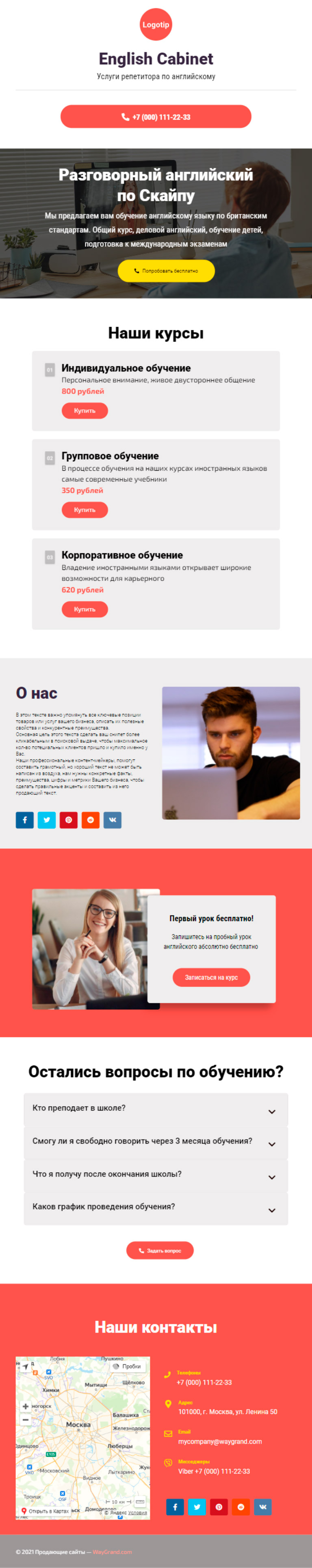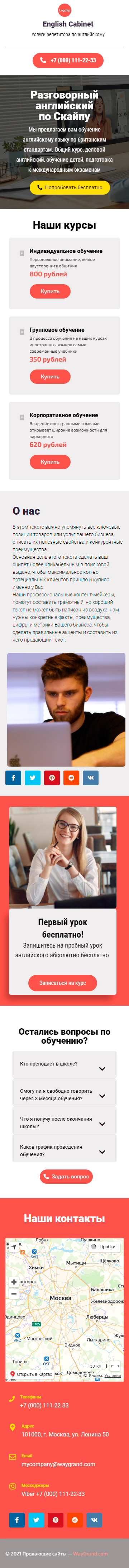 Закажите готовый продающий сайт визитка #1463101 в Одинцове за 5-7 дня «под ключ»: свёрстан, отрисован и готов к рекламе. Тематика шаблона «Услуги репетитора по английскому».