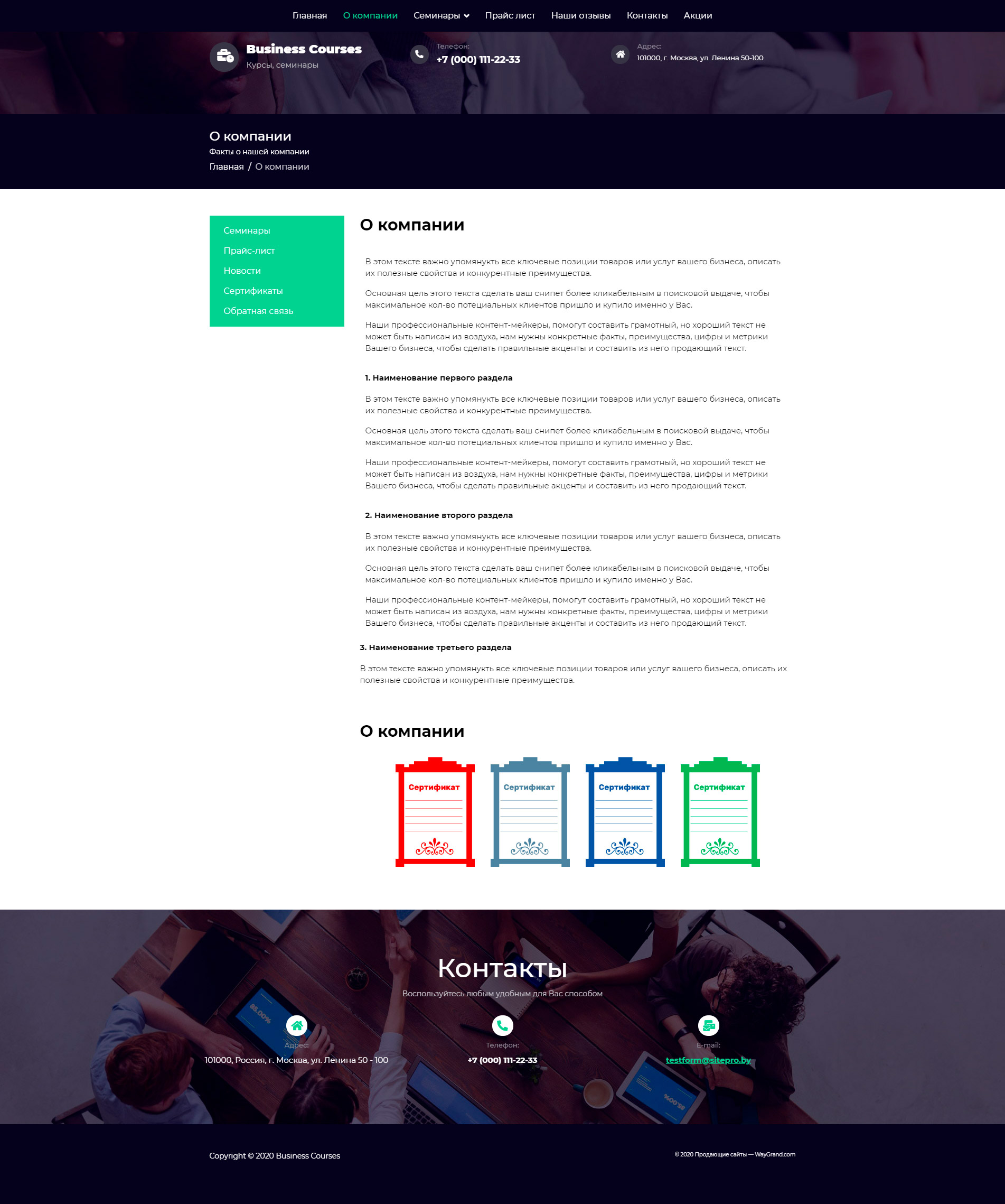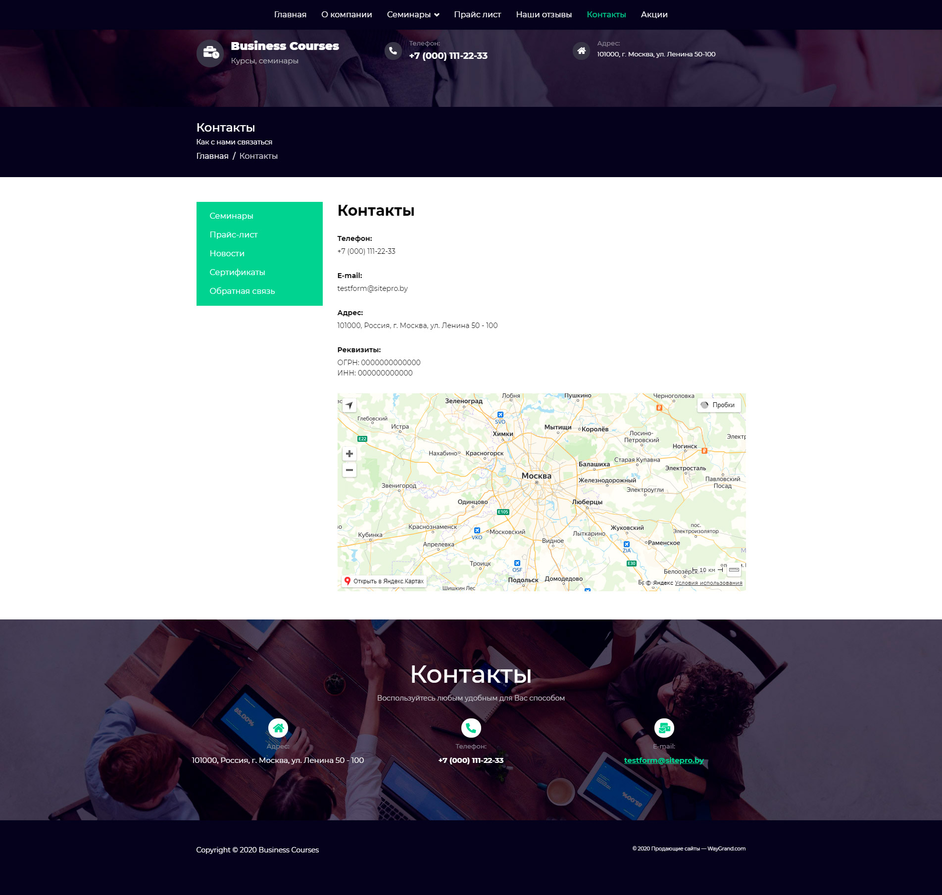Закажите готовый продающий сайт визитка #1448303 в Одинцове за 5-7 дня «под ключ»: свёрстан, отрисован и готов к рекламе. Тематика шаблона «Бизнес курсы и семинары».