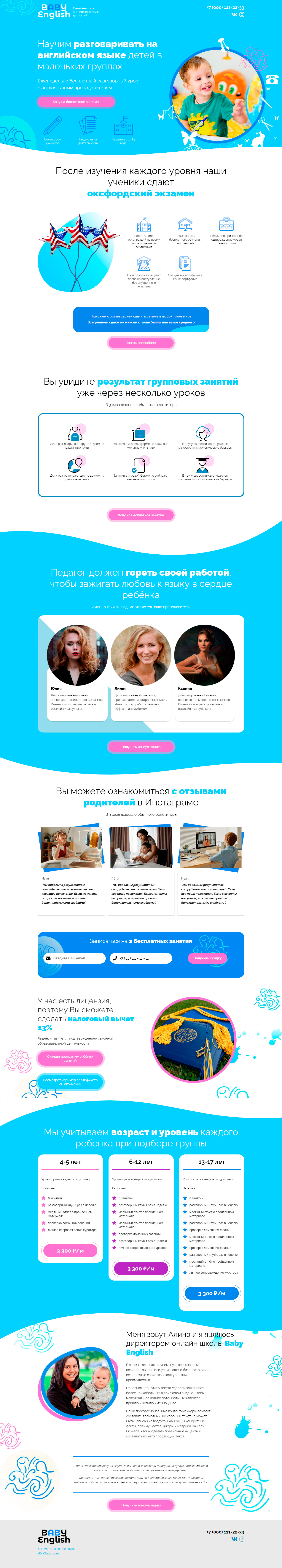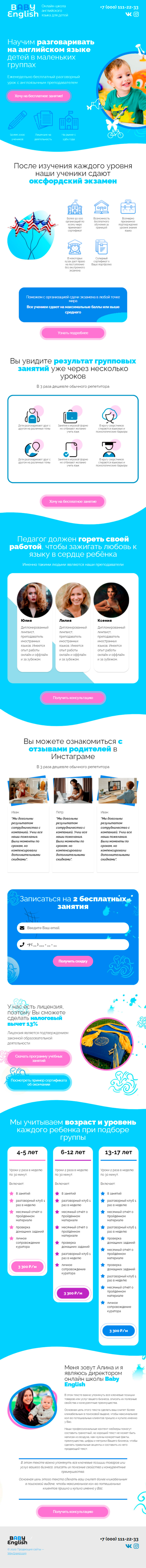 Закажите готовый продающий сайт лендинг #3172201 в Одинцове за 1-3 дня «под ключ»: свёрстан, отрисован и готов к рекламе. Тематика шаблона «Английский для детей».
