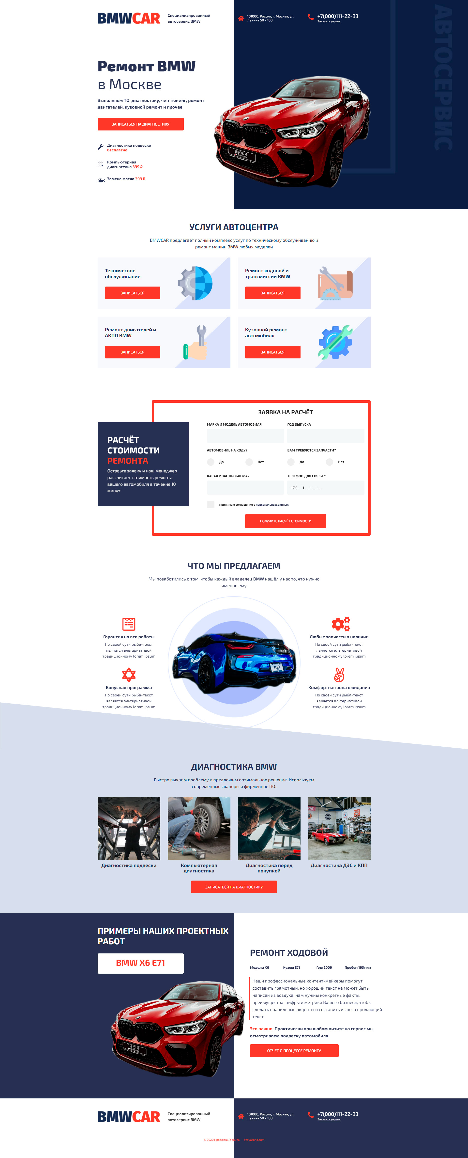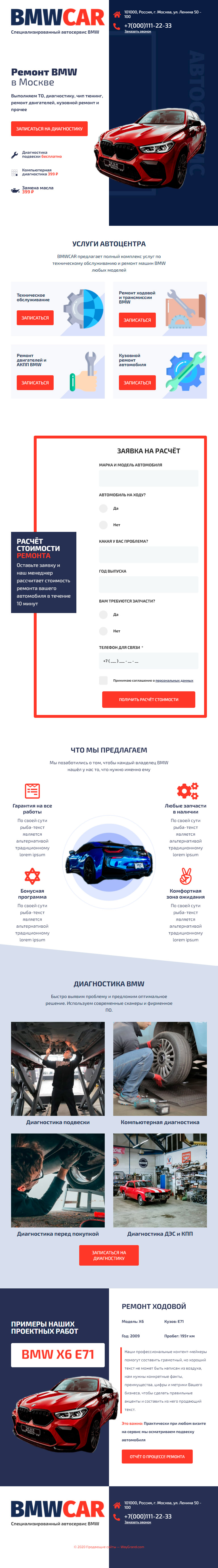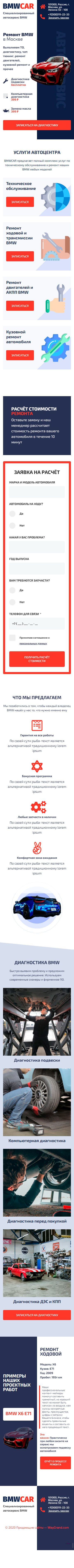 Закажите готовый продающий сайт лендинг #0210202 в Одинцове за 1-3 дня «под ключ» по выгодным ценам на WayGrand: свёрстан, отрисован и готов к рекламе. Тематика шаблона «Ремонт BMW».