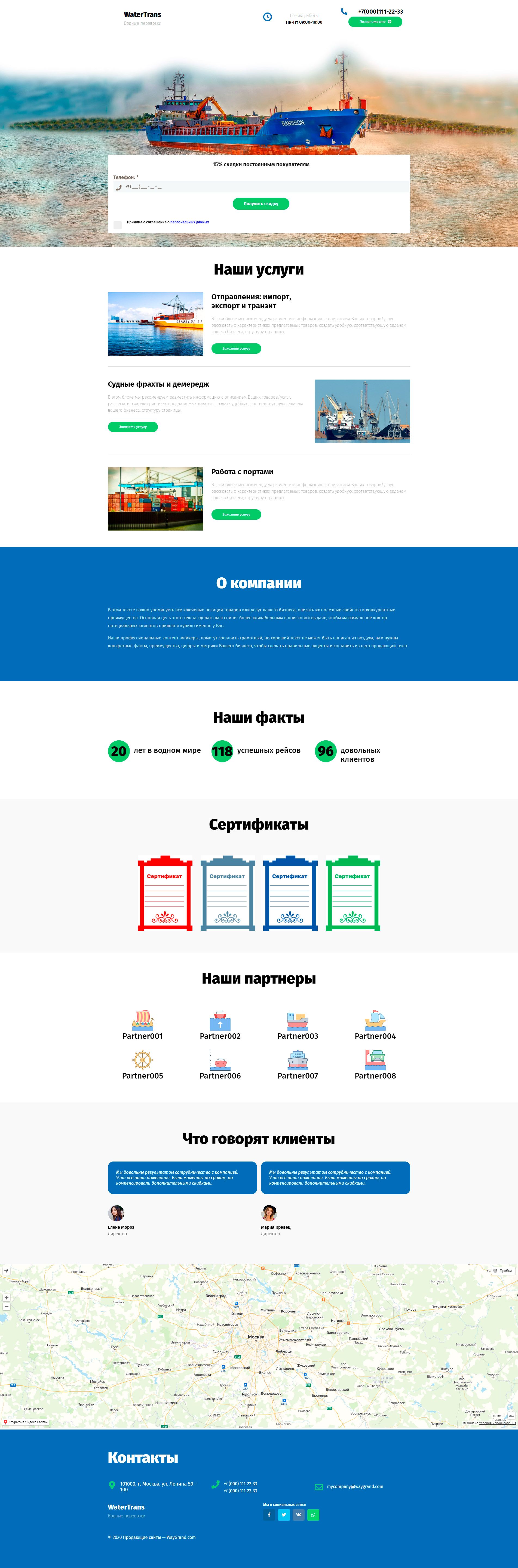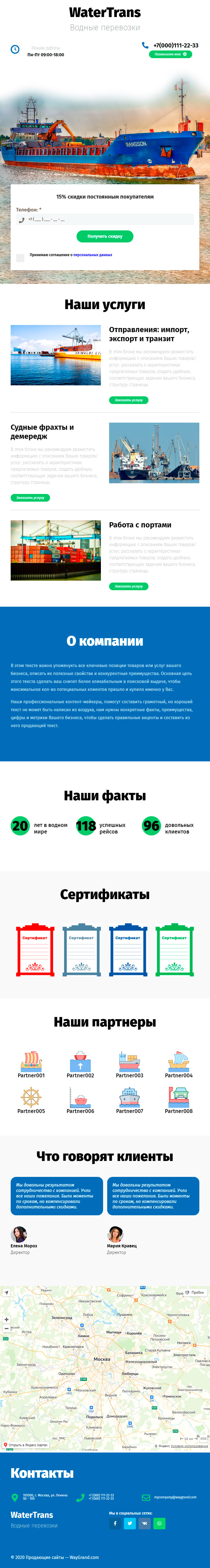 Закажите готовый продающий сайт лендинг #1908201 в Одинцове за 1-3 дня «под ключ»: свёрстан, отрисован и готов к рекламе. Тематика шаблона «Морские перевозки».