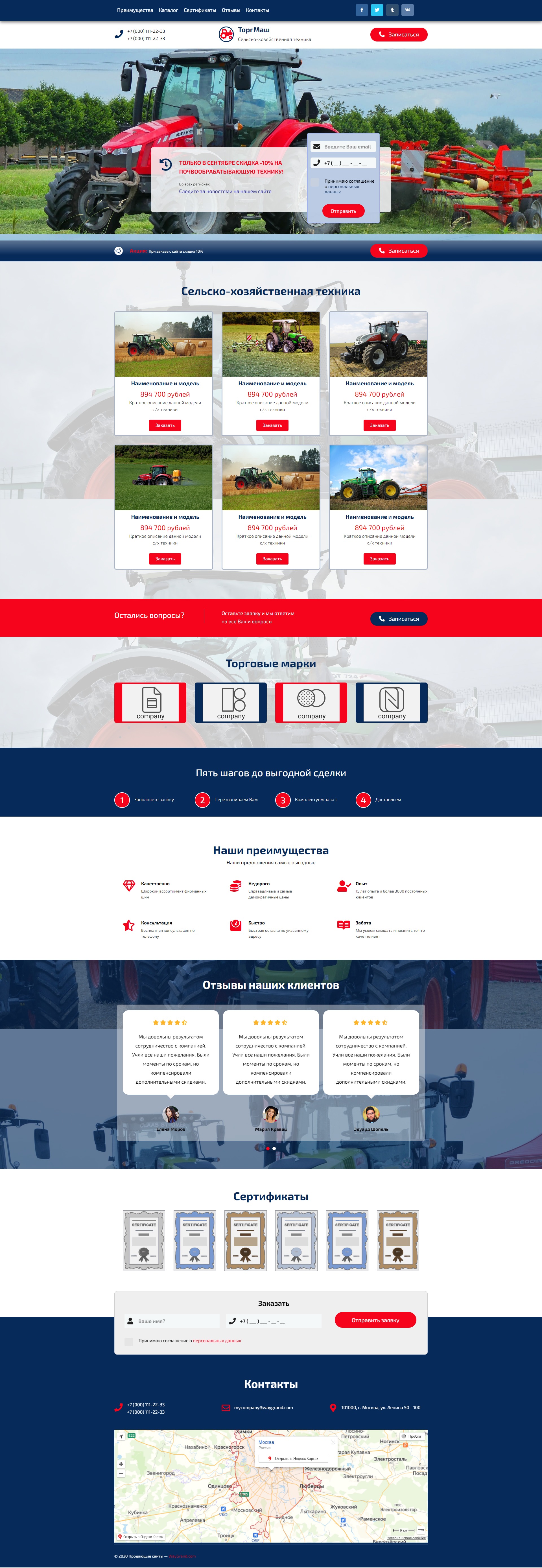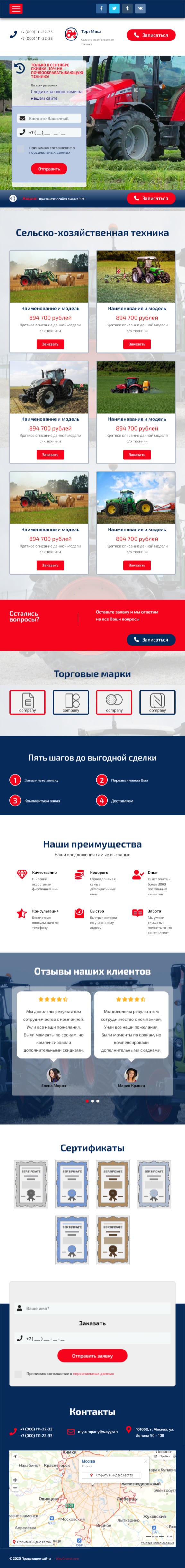 Закажите готовый продающий сайт лендинг #2553202 в Одинцове за 1-3 дня «под ключ»: свёрстан, отрисован и готов к рекламе. Тематика шаблона «Сельско-хозяйственная техника».