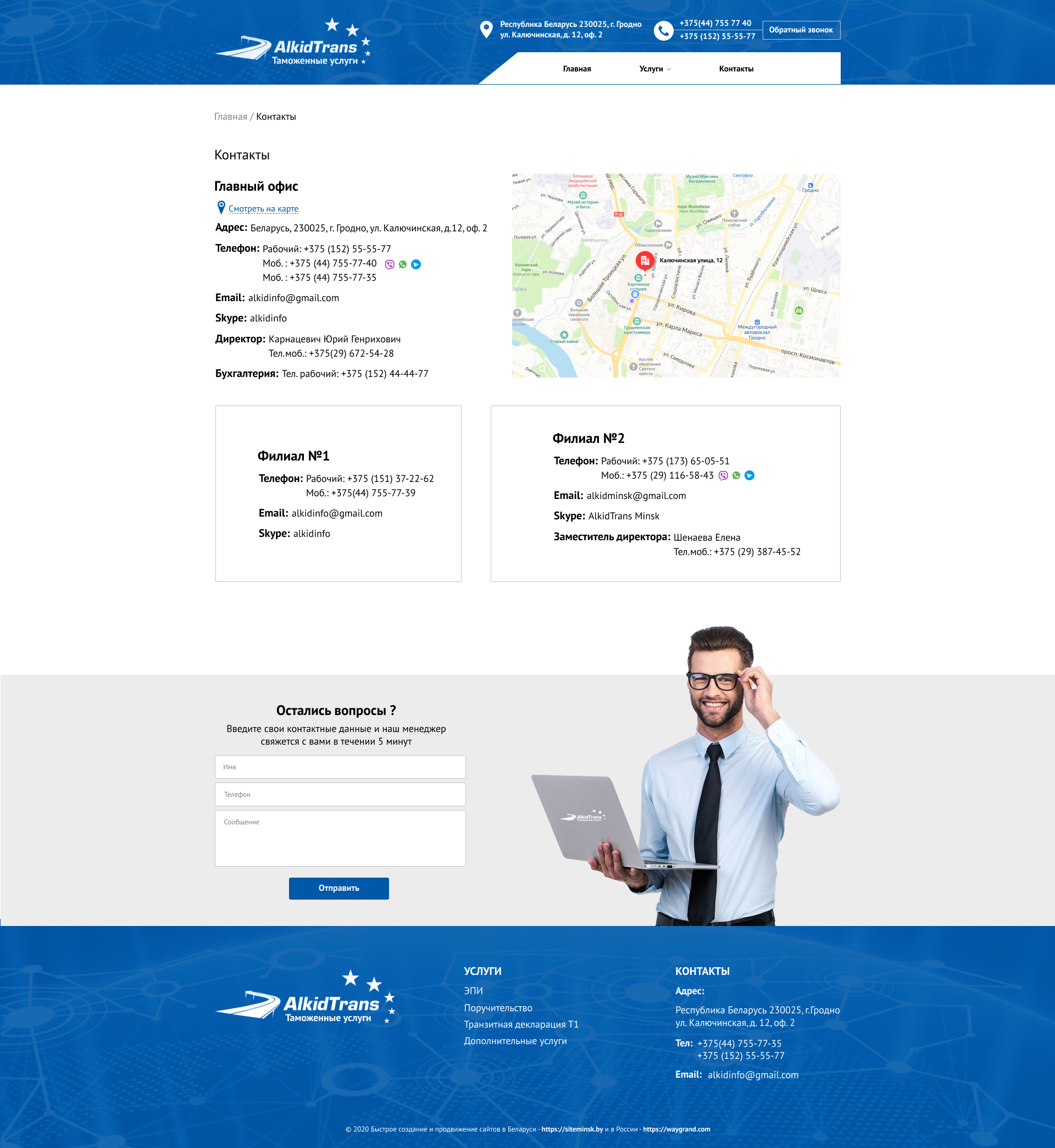 Закажите готовый продающий сайт визитка #234 в Одинцове за 5-7 дня «под ключ»: свёрстан, отрисован и готов к рекламе. Тематика шаблона «Таможенные услуги».