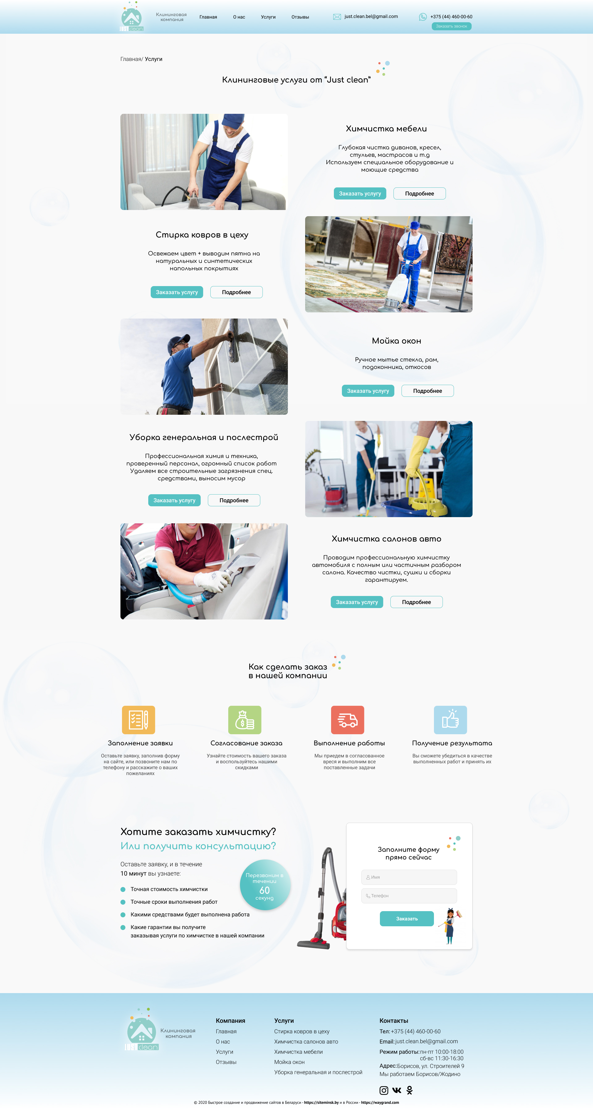 Закажите готовый продающий сайт визитка #237 в Одинцове за 5-7 дня «под ключ»: свёрстан, отрисован и готов к рекламе. Тематика шаблона «Клининговая компания».