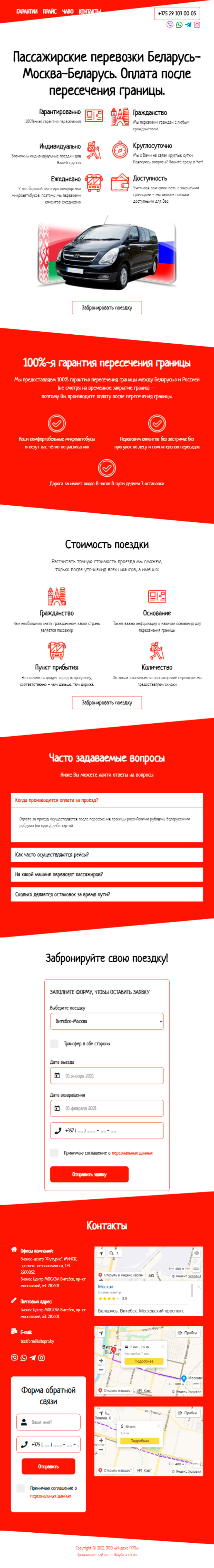 Закажите готовый продающий сайт лендинг #2528201 в Одинцове за 1-3 дня «под ключ»: свёрстан, отрисован и готов к рекламе. Тематика шаблона «Пассажирские перевозки Беларусь-Москва-Беларусь».