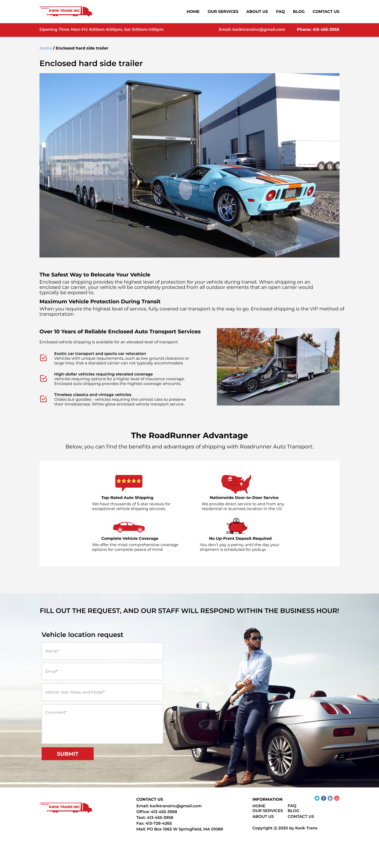 Закажите готовый продающий сайт визитка #223 в Одинцове за 5-7 дня «под ключ»: свёрстан, отрисован и готов к рекламе. Тематика шаблона «Safe & Reliable National Auto Transport».
